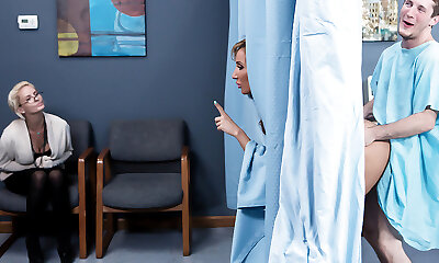 Aged doctor seduces teen brunette ultra-cutie in her bed and licks her pussy