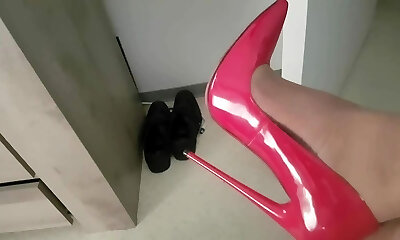 slut crushing in high high-heeled shoes some fruit in sexy minishort.