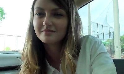 Picked up naughty whore Hazel Moore starts draining right in the car