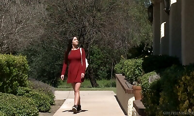 Lusty big breasted housewife Reagan Foxx lures lovely dark-haired for lezzie intercourse