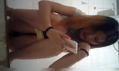 Urinating spy cam shot of a cute asian girl on a toilet